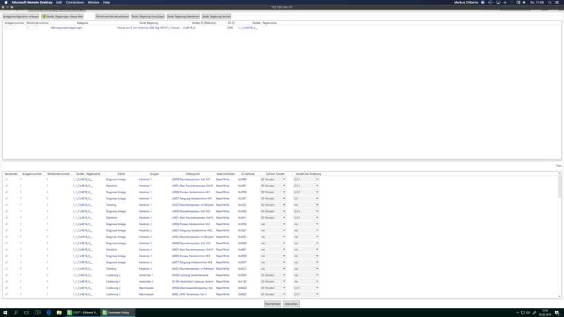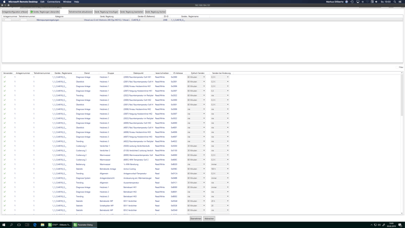 Bild zeigt den erfolgreichen Import im Experten des Homeservers / Facilityservers. Dort können die Datenpunkte nun weiter verwendet werden um die Heizung zu kontrollieren / zu steuern.