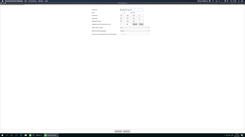 Anschließend wählt man das Gateway über den PARAMETER REITER aus und es öffnet sich folgender Dialog