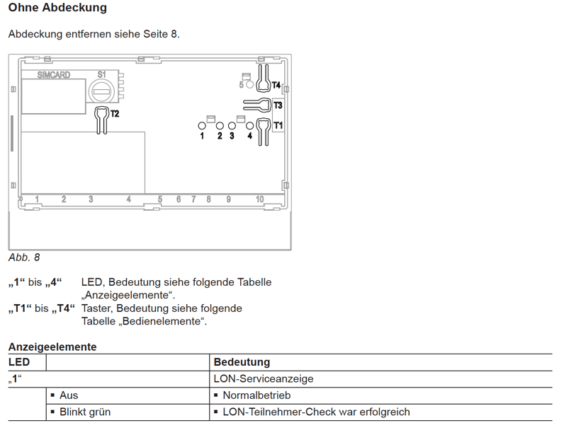 Wenn man die obere Abdeckung abzieht entdeckt man im folgenden die Anschlüsse, LED Lampen und die Funktionsknöpfe, wie auch in der Montage und Serviceanleitung die mitgeliefert wird dokumentiert.
